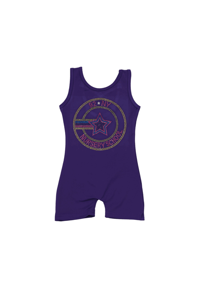 Let your young athlete shine in this vibrant purple activewear set featuring a dazzling rhinestone moon and star design. Perfect for gymnastics, dance, cheer, or everyday active play.